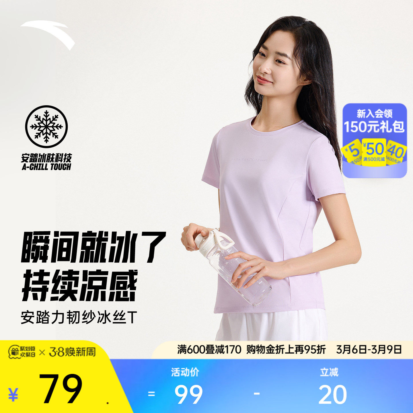 安踏速干短袖女2026夏季新款t恤显瘦圆领亲肤打底运动冰丝上衣女