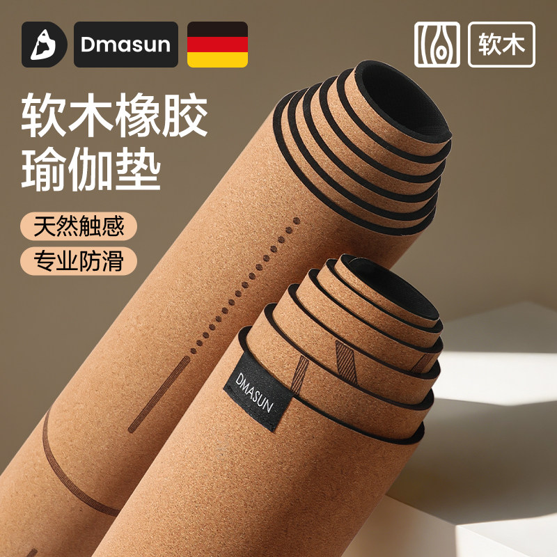 软木天然橡胶瑜伽垫女士专用减震静音防滑可折叠运动垫便携健身垫