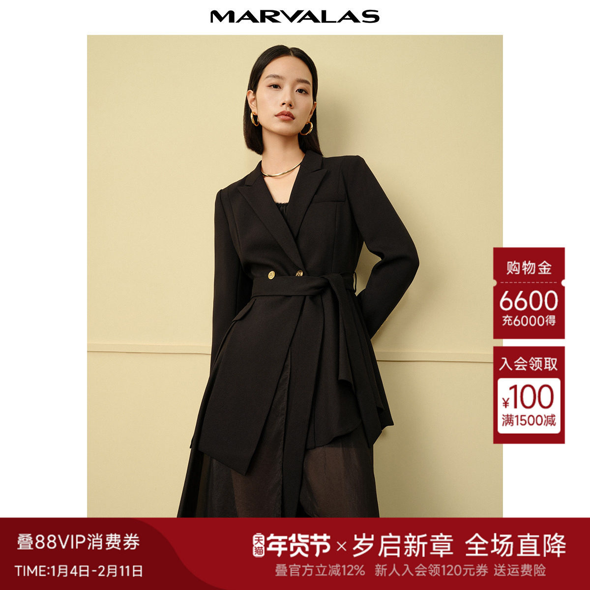 曼德诗纯色西服连衣裙2025秋季新品设计感不规则下摆拼接OL西装裙