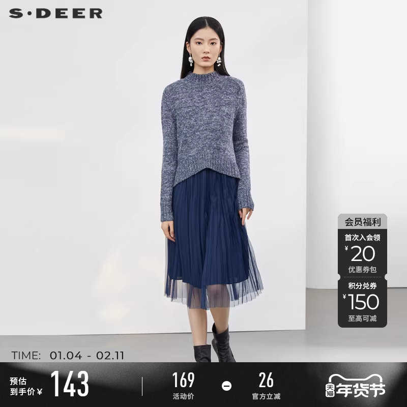 sdeer圣迪奥冬装女针织网纱通勤OL两件套针织衫连衣裙女S20461210