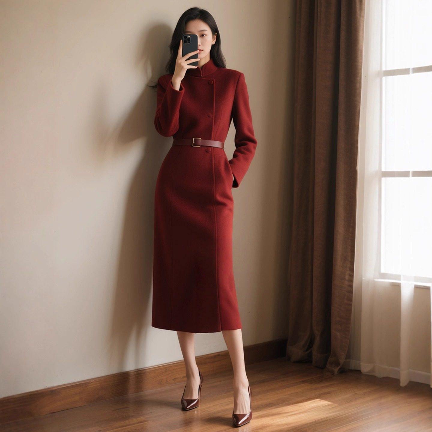 气质名媛御姐风知性OL连衣裙2025秋冬新款收腰系带长袖高领长裙