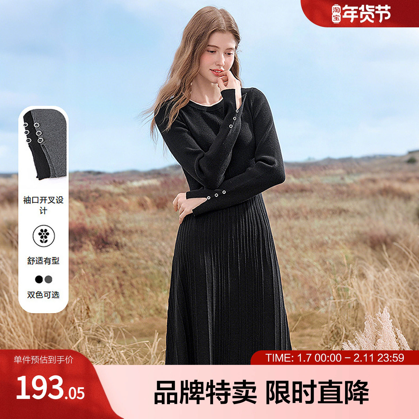 HONRN/红人长袖裙子修身收腰显瘦a字针织连衣裙女秋冬款HH55OL329