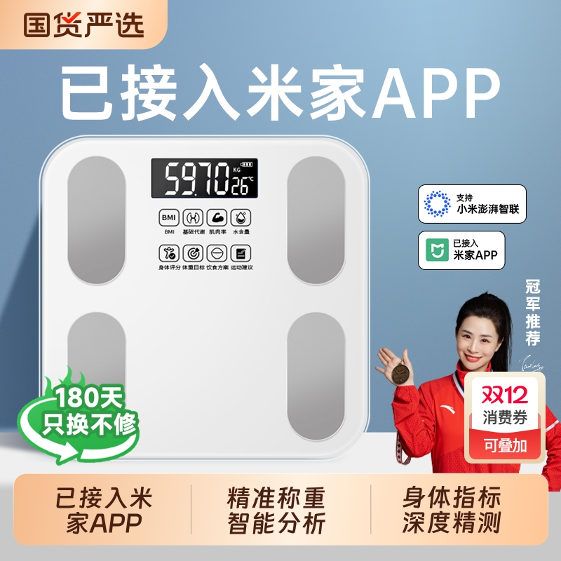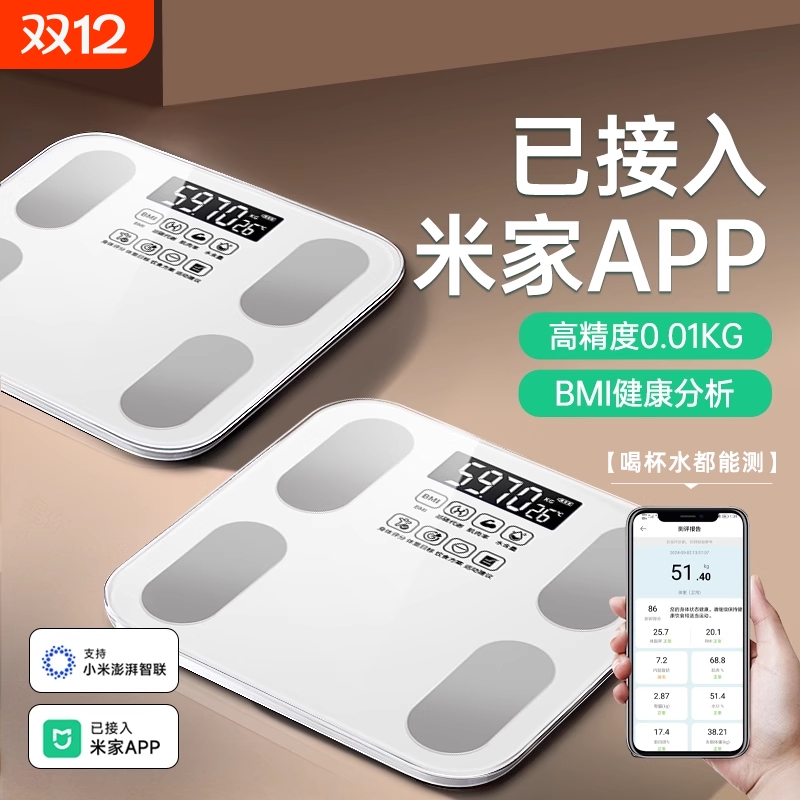 体重秤家用智能体脂秤充电小型精准人体电子称重计已接入米家APP