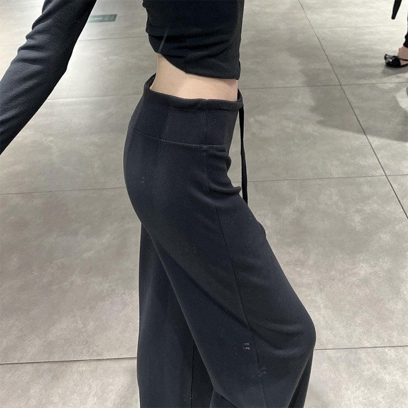 黑色弹力运动裤女款松弛感大码胖mm微喇休闲宽松卫裤瑜伽直筒裤子