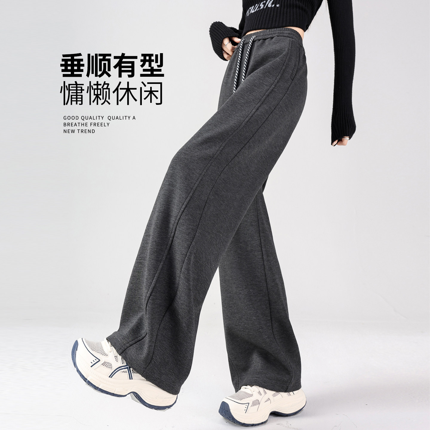 小C家 灰色运动裤女款2025新款冬加厚加绒卫裤休闲直筒宽松阔腿裤