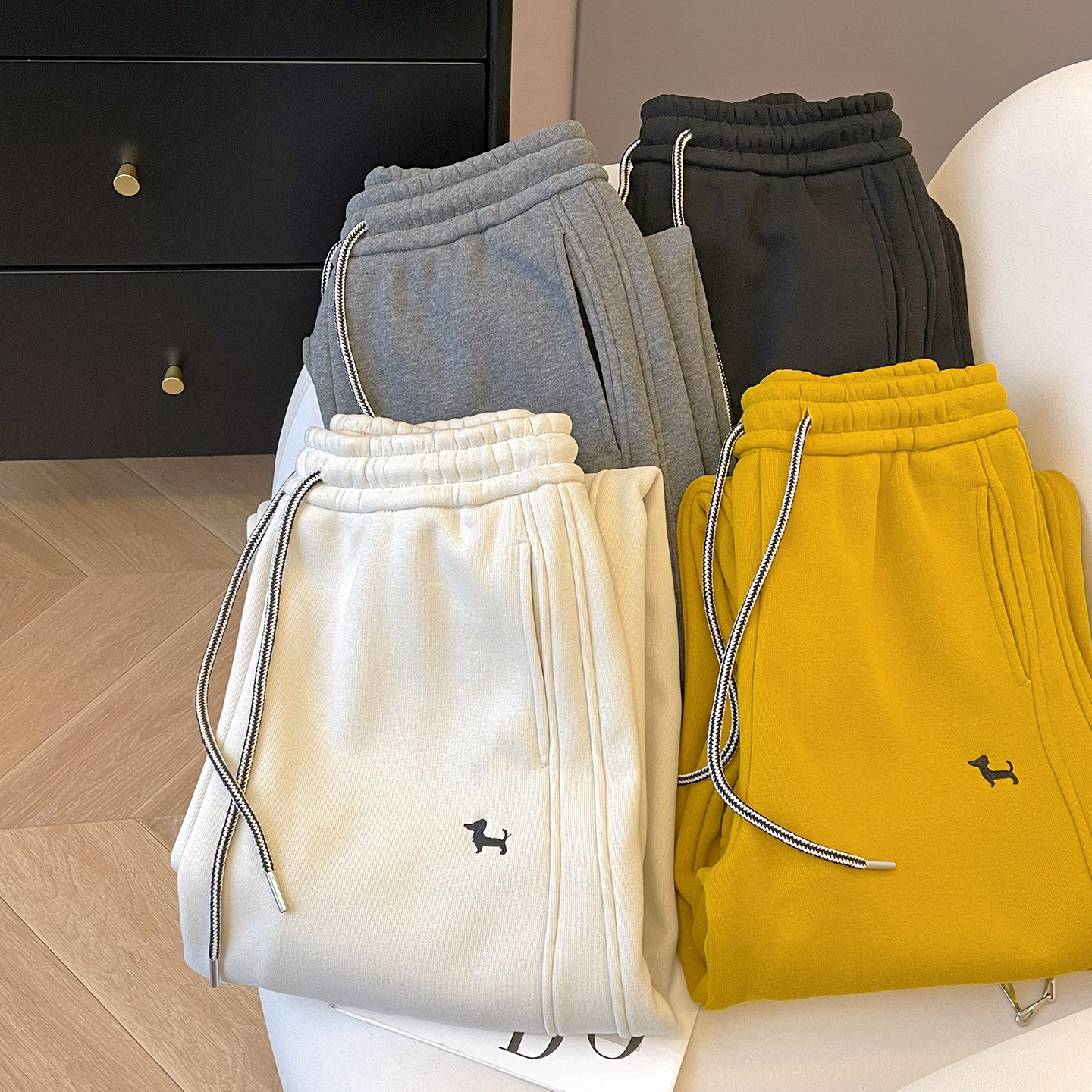 小C家 加绒运动裤女款2025新款冬加厚窄版阔腿裤小狗刺绣休闲卫裤