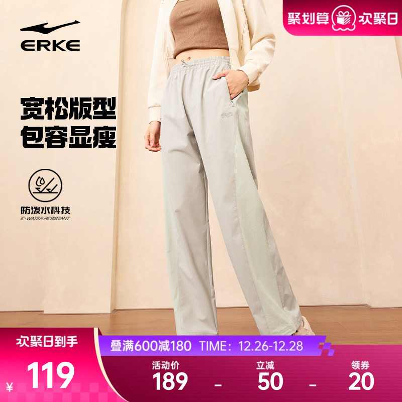 鸿星尔克运动裤女款秋冬新款宽松直筒长裤女小个子裤子女裤休闲裤