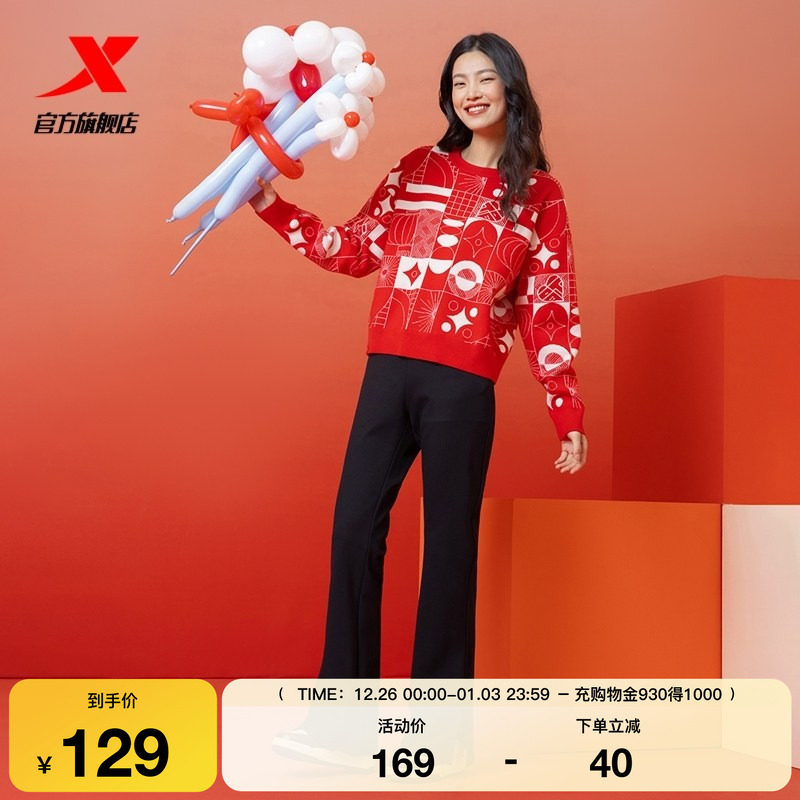 特步新年丨喇叭裤修身运动裤女款春秋季时尚潮流百搭时尚黑色卫裤