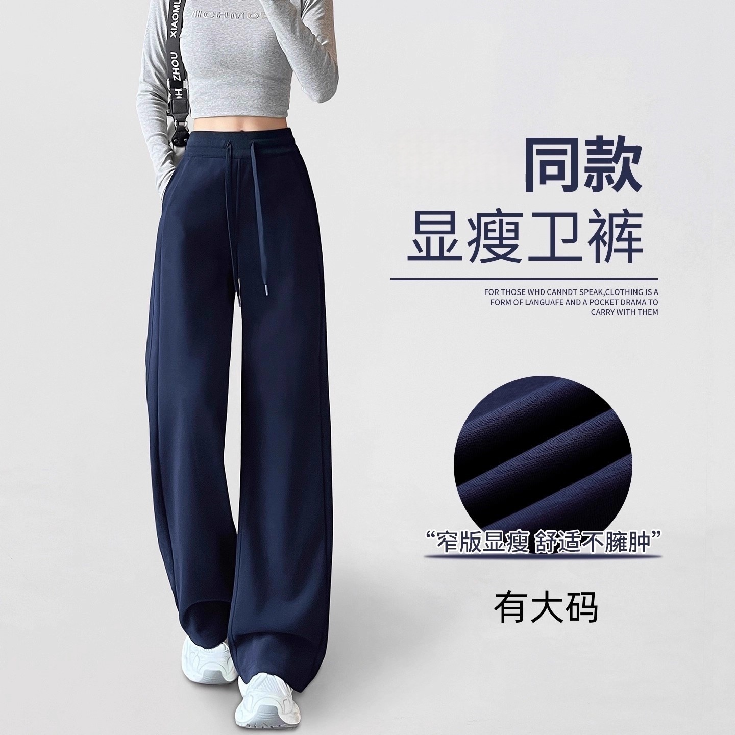 藏青色运动裤女款2025新款秋冬同款加绒卫裤早秋香蕉阔腿裤子大码