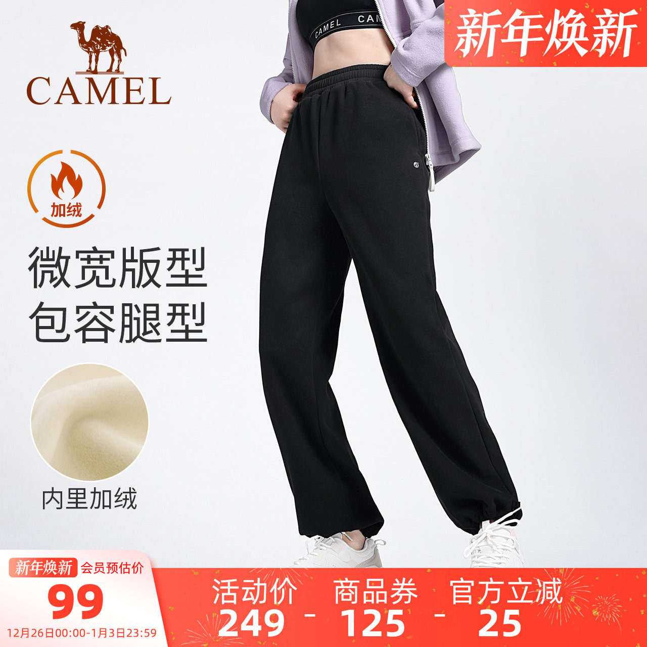 骆驼加绒加厚休闲裤长裤秋冬运动裤女款宽松直筒裤跑步训练健身裤