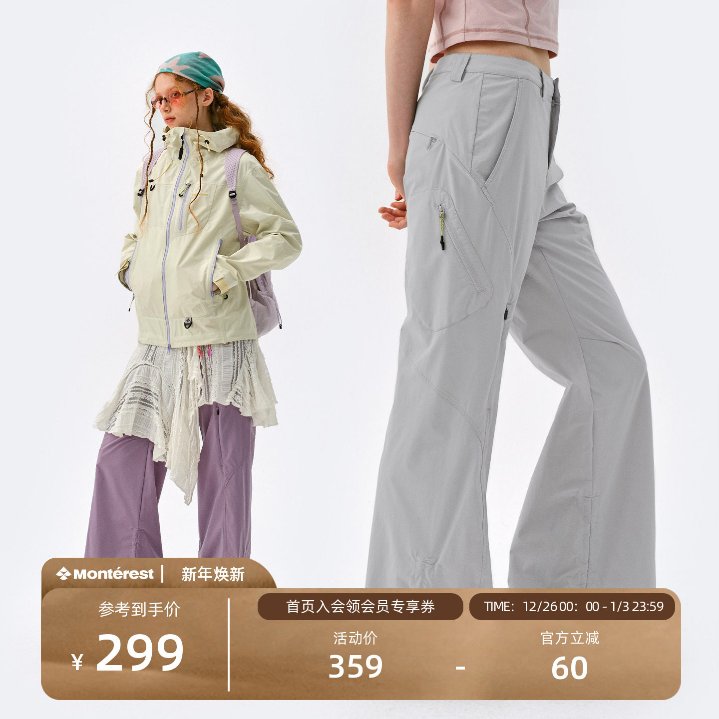 瞬时山野Monterest户外微喇C6防泼水休闲长裤登山软壳运动裤女款