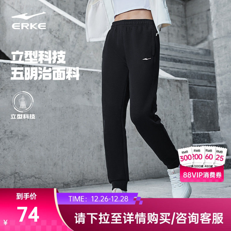 鸿星尔克加绒运动裤女冬季女士卫裤休闲裤小个子女裤加厚裤子女款