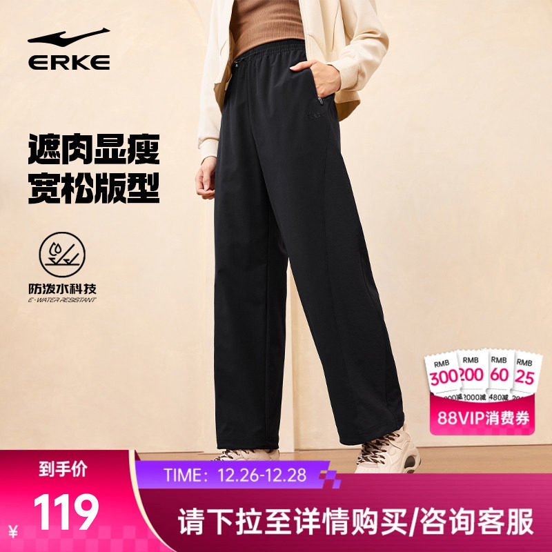 鸿星尔克宽松直筒裤女秋季新款女士黑色长裤运动裤女款休闲裤女裤
