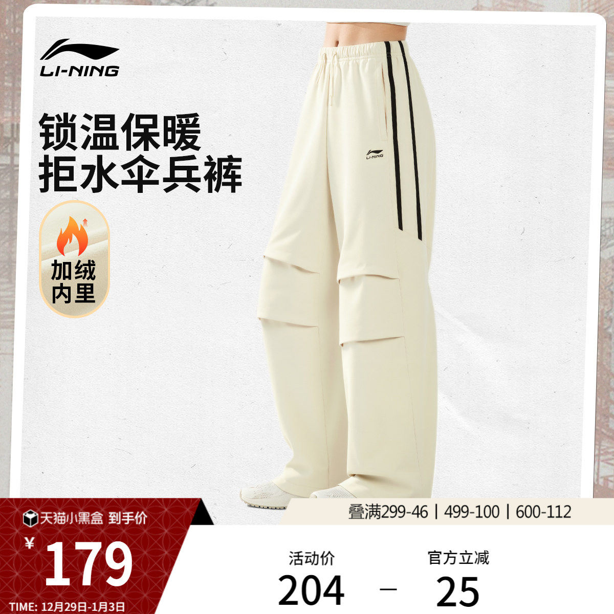 李宁伞兵裤女士2025新款冬季加绒加厚美式休闲宽松工装运动裤女款
