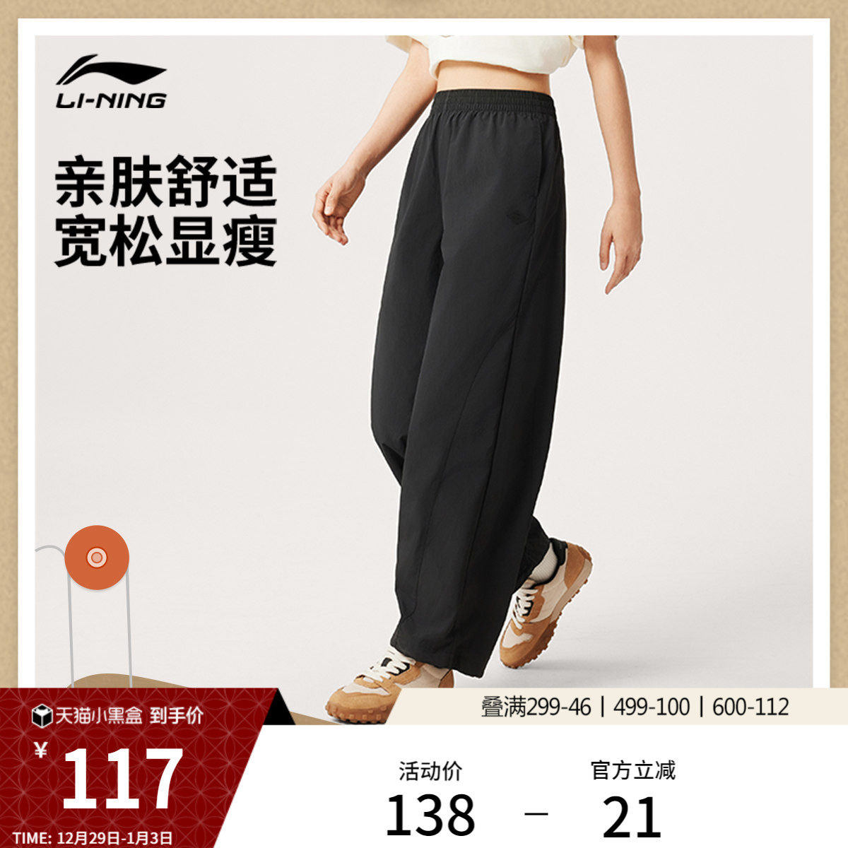 李宁运动裤女款2025秋季新款舒适透气百搭户外跑步休闲卫裤平口裤