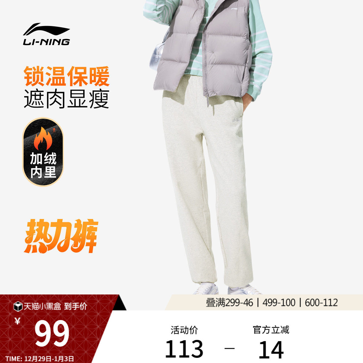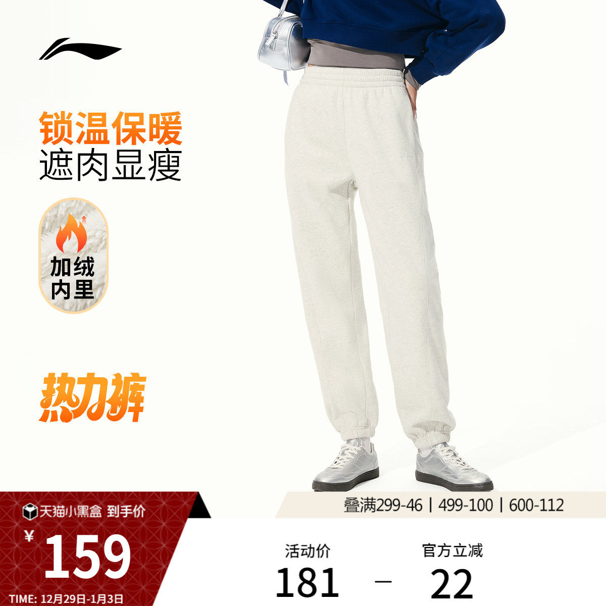 李宁热力裤丨卫裤2025新款裤子宽松秋冬季加绒保暖束脚运动裤女款