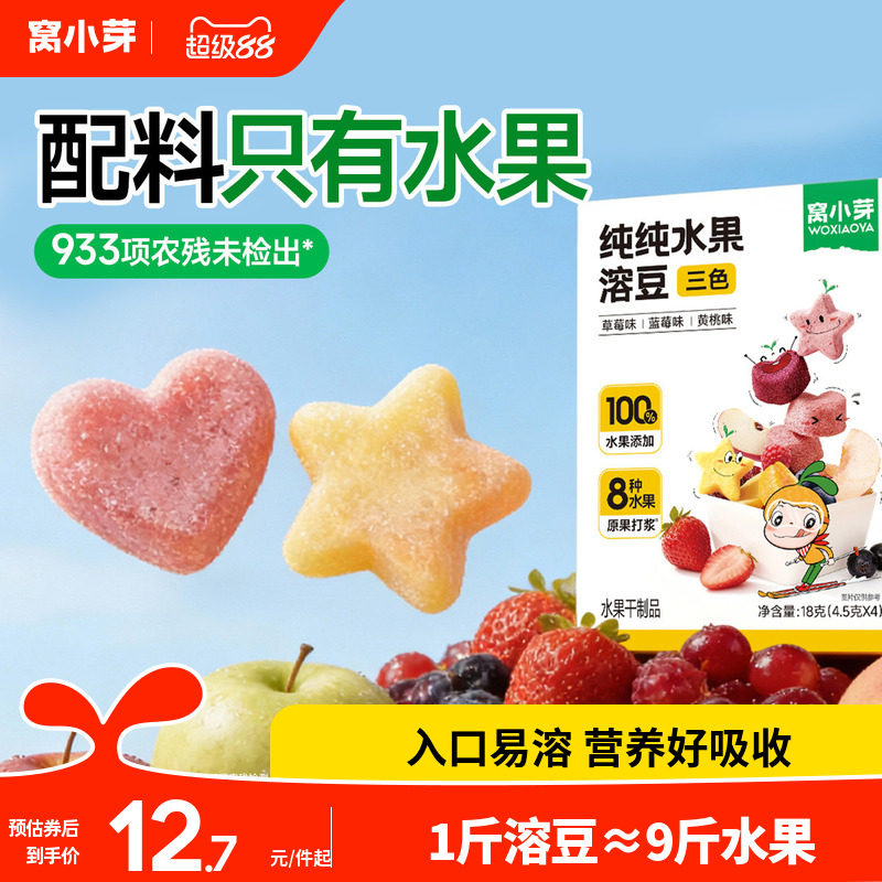 窝小芽维C水果草莓香蕉溶溶豆无添加糖零食送婴幼儿童宝宝辅食谱