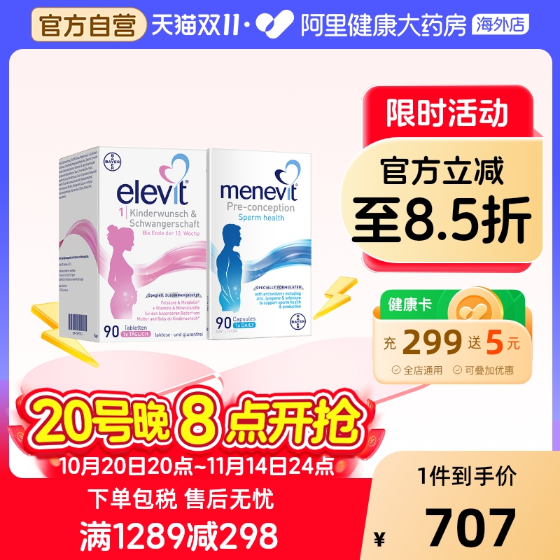 【王炸CP】Elevit爱乐维1段活性叶酸孕妇专用+男士备孕复合维生素