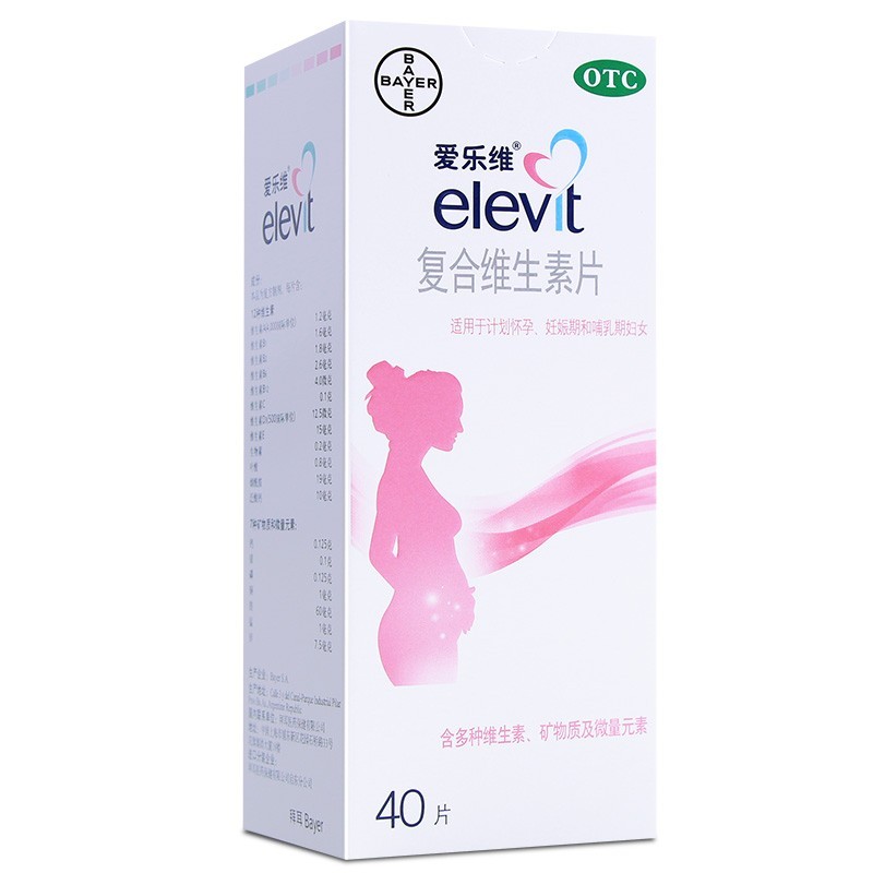 elevit/爱乐维 复合维生素片40片/盒孕妇叶酸胎儿孕前中后补充