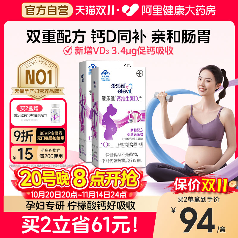 elevit爱乐维孕妇钙片维生素D柠檬酸钙女性补钙孕期哺乳期100片