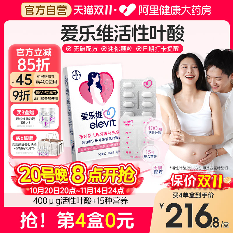 【爆款销量王】elevit爱乐维活性叶酸中国版孕妇孕期复合维生素