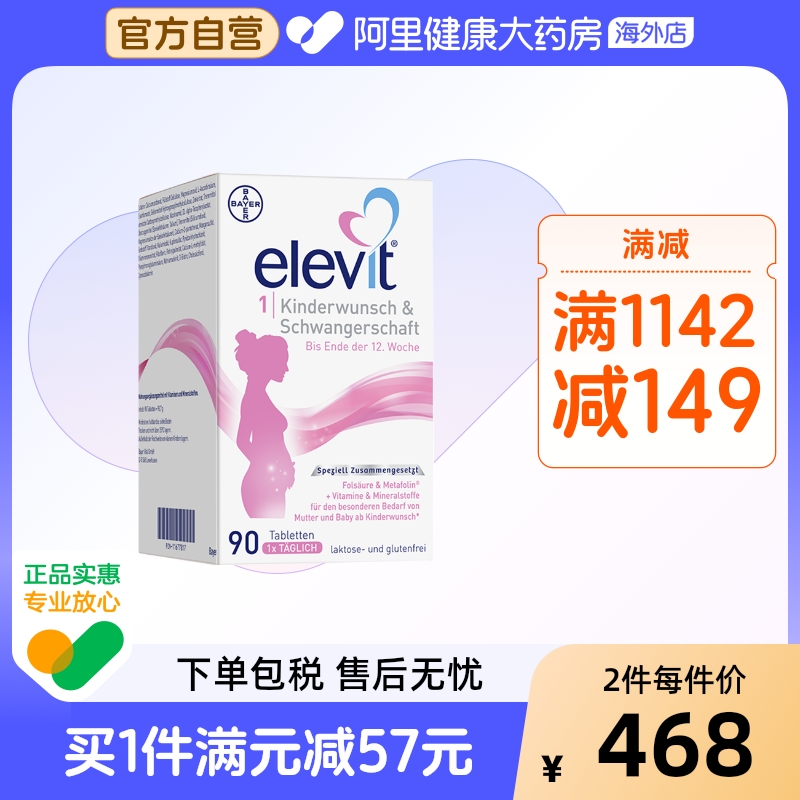 拜耳 德国爱乐维Elevit孕妇备孕期活性叶酸孕期维生素1段90粒