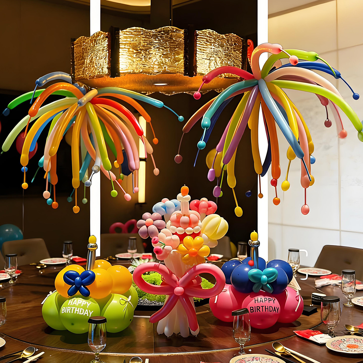 酒店包间生日派对布置场景装饰彩色多巴胺烟花长条气球加厚男女孩