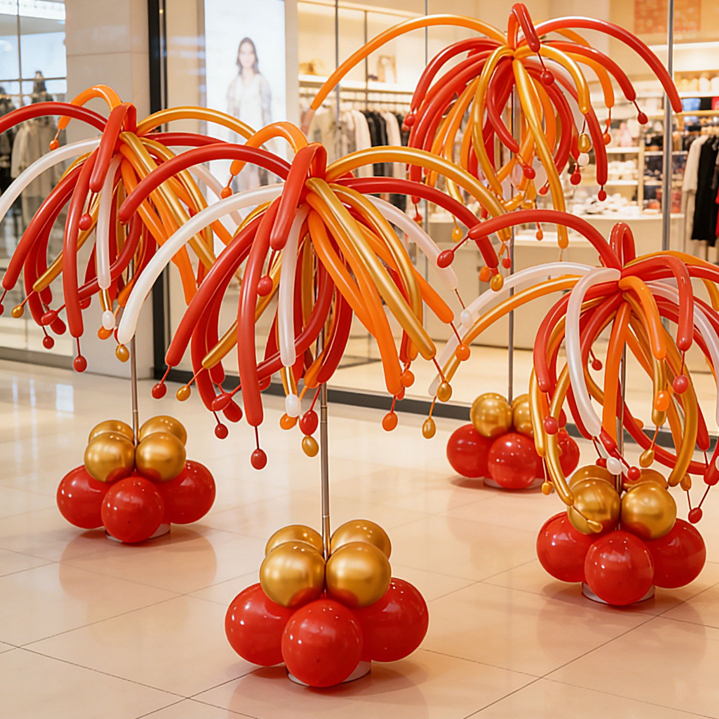 2026新年氛围装饰烟花长条气球立柱摆件商场过年开业店庆布置道具