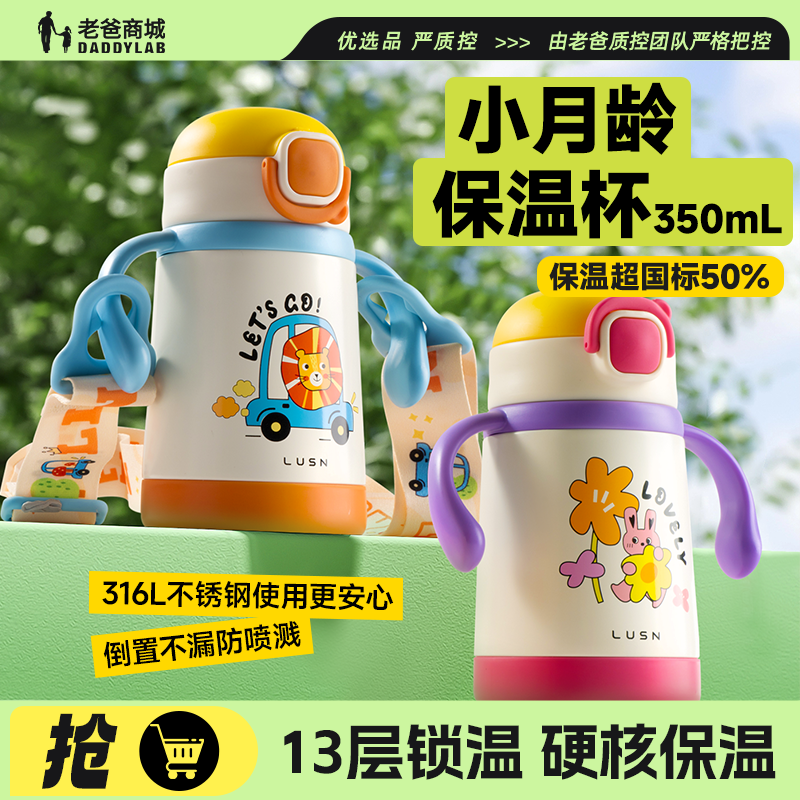 如山儿童保温杯宝宝吸管杯小月龄学饮杯奶瓶幼儿园316L不锈钢水杯
