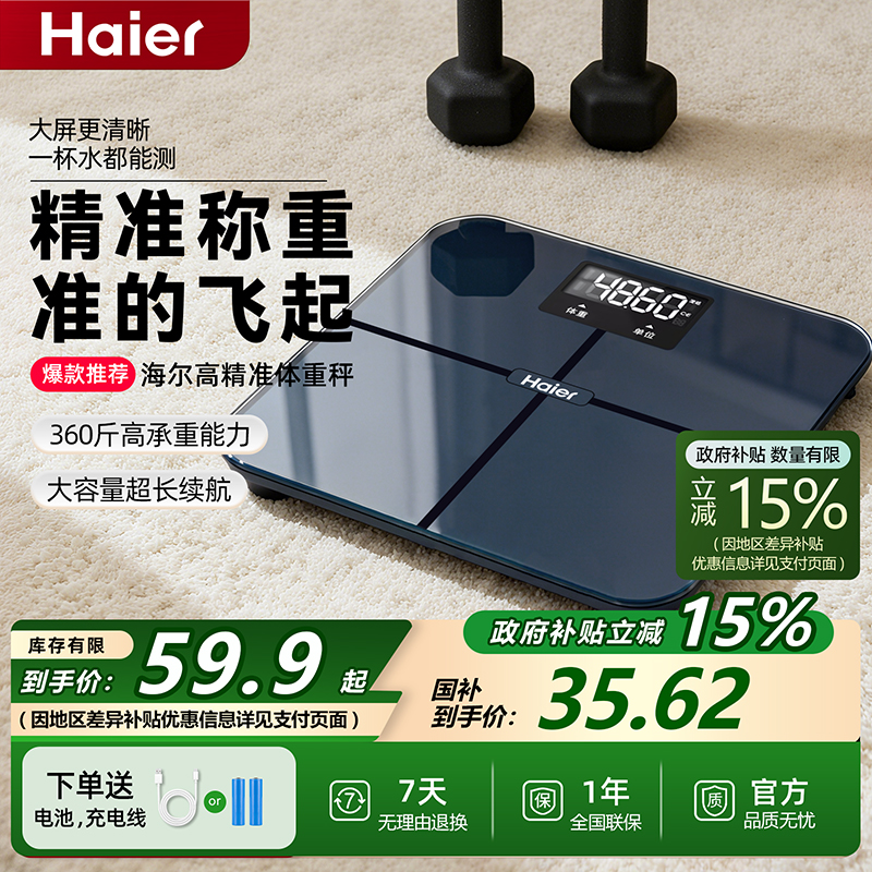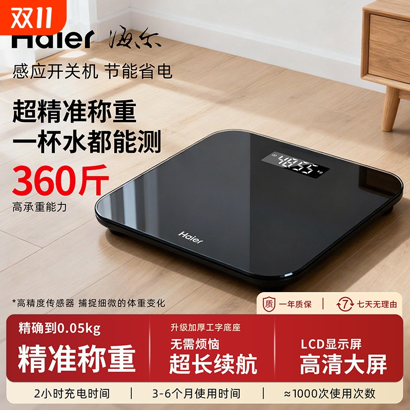 海尔体重秤家用高精准度电子秤减肥人专用宿舍体脂称2025新款充电