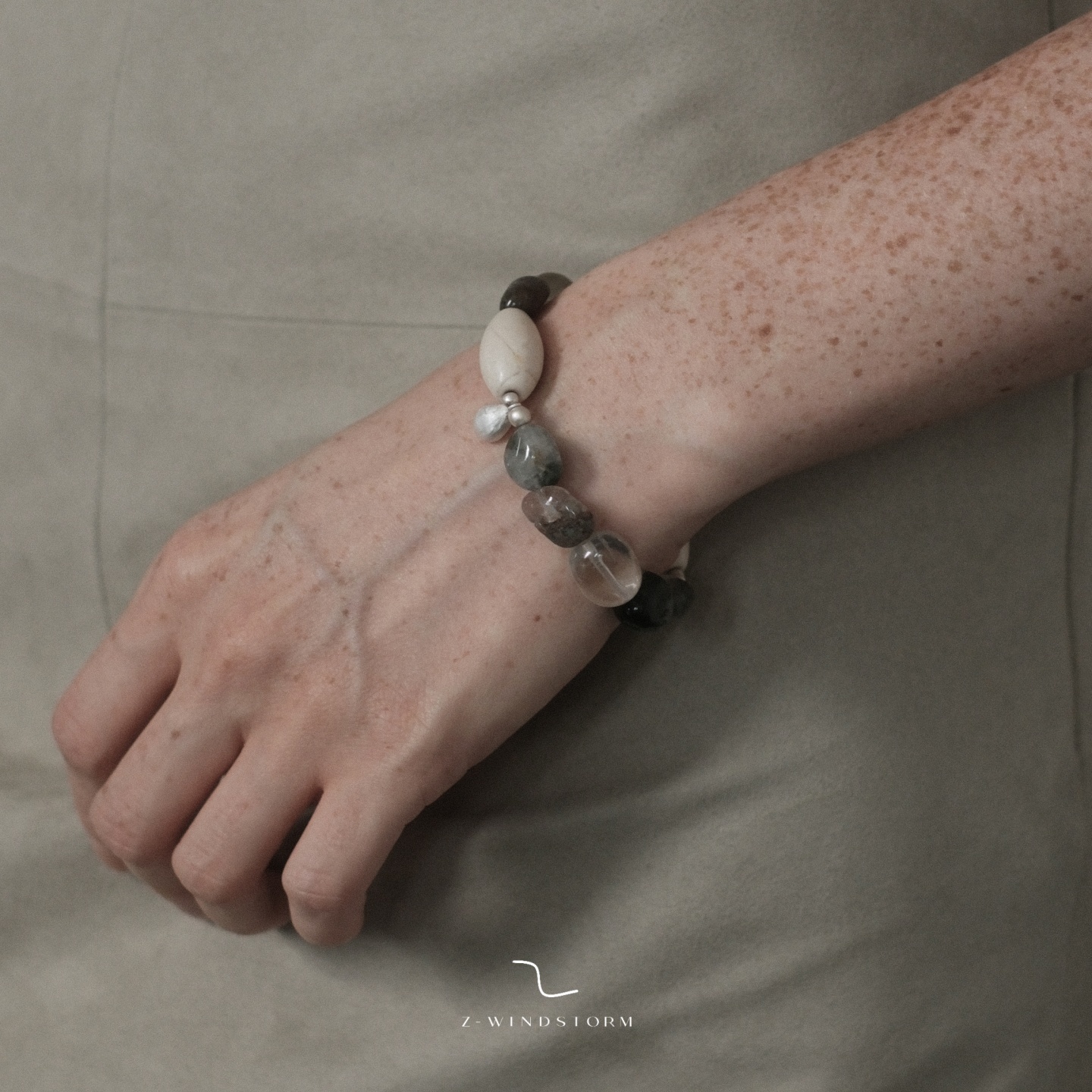 Z-WINDSTORM 无序串珠绿幽灵手链原创小众设计水晶手串空间的温度