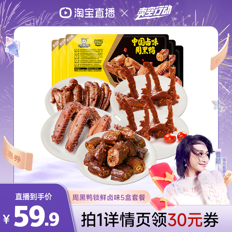 【5盒装】周黑鸭锁鲜鸭脖鸭锁骨鸭翅鸭货卤味解馋零食官方旗舰店