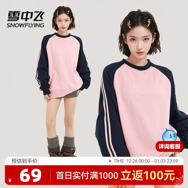雪中飞纯棉长袖t恤女春秋2025新款宽松休闲上衣学生插肩打底衫PC