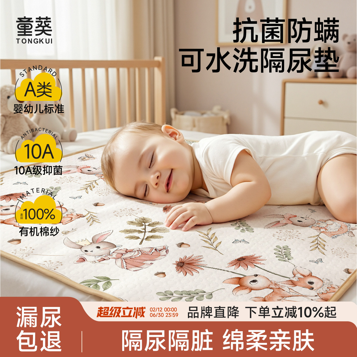 婴儿童隔尿垫防水可洗透气姨妈月经期大尺寸宝宝隔夜尿布床垫a类