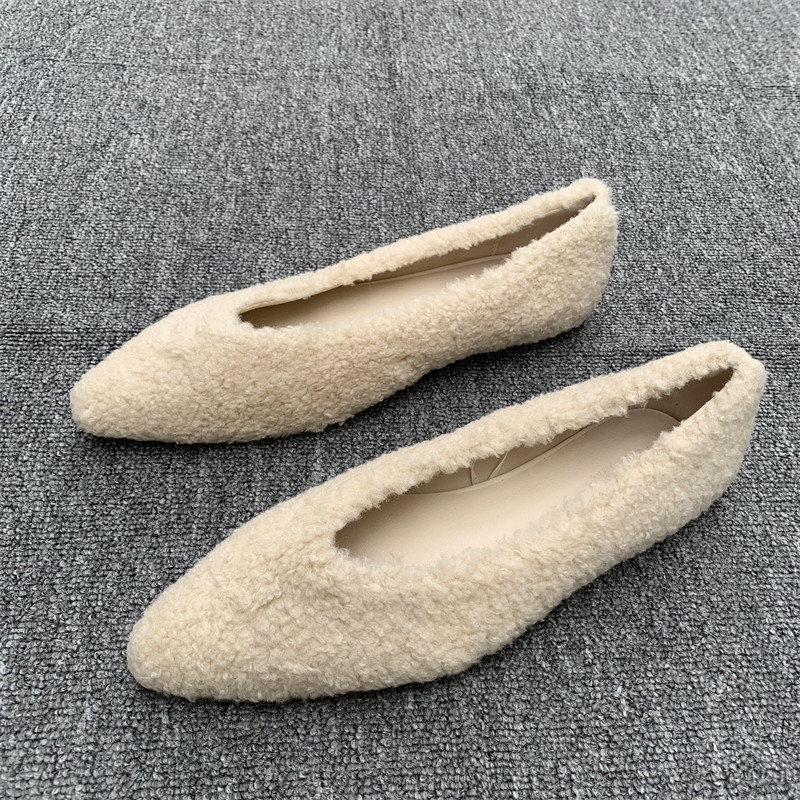 羊皮毛一体~2025冬新款羊羔毛平底浅口单鞋女加绒保暖毛毛鞋外穿