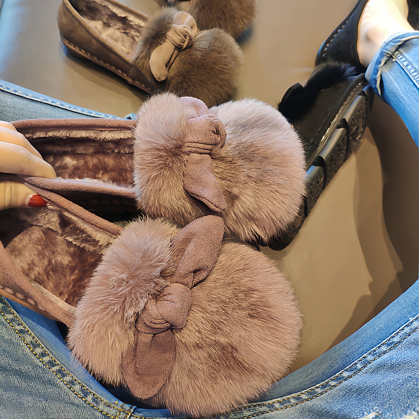 蝴蝶结毛毛鞋女冬外穿狐狸毛豆豆鞋平底加绒保暖单鞋一脚蹬棉瓢鞋