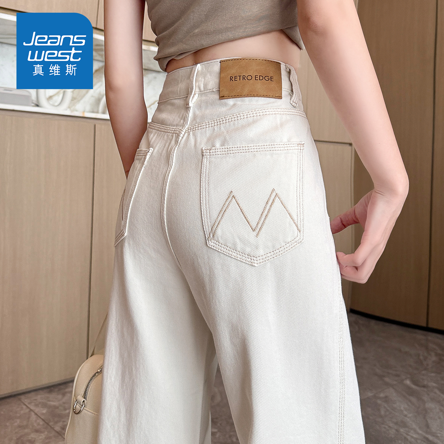 KZH真维斯高端牛仔裤女秋季新款宽松直筒裤白色高腰阔腿垂感长裤