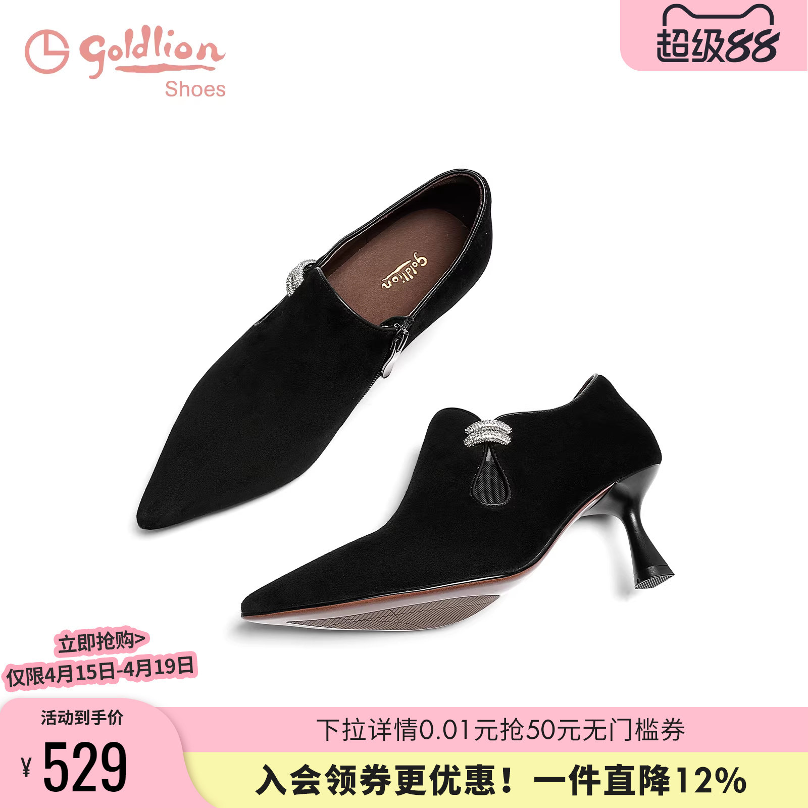 金利来尖头裸靴女春秋新款女鞋优雅气质细跟高跟鞋羊反绒深口单鞋