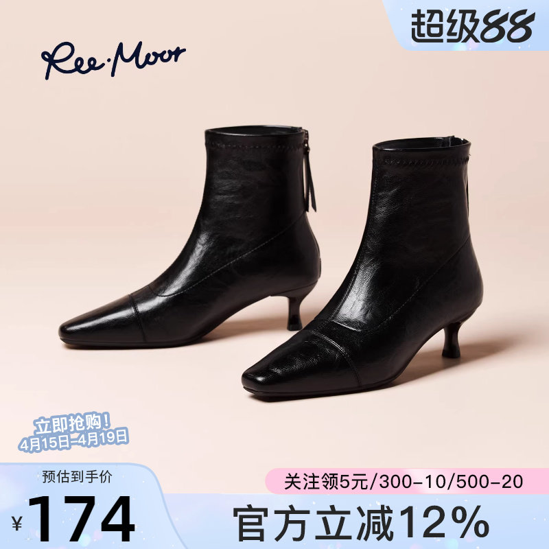 reemoor睿慕2025新款时尚方头气质短靴女细跟高跟弹力瘦瘦裸靴