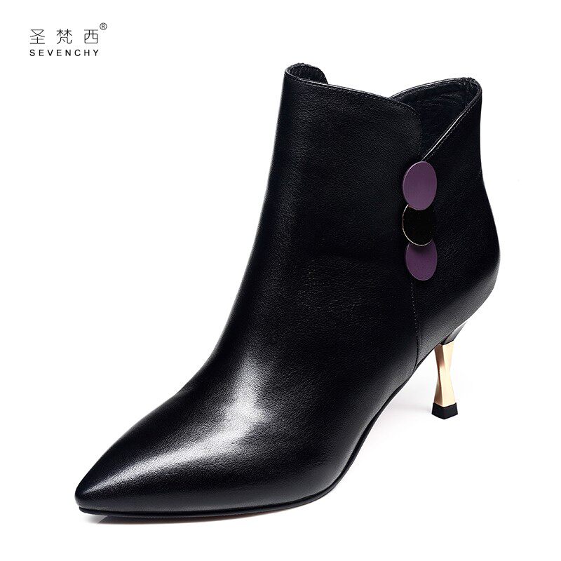 - 高跟短靴子真皮冬
