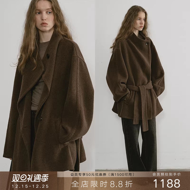 FBB WORKS "时间的呼吸"重磅羊毛立领短款毛呢外套秋冬收腰大衣