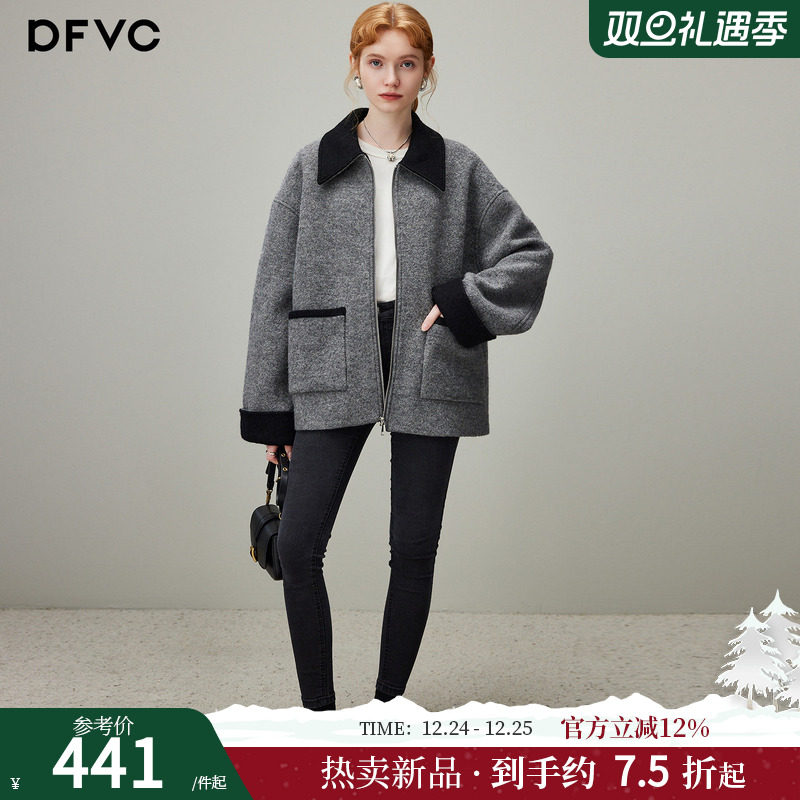 dfvc灰色韩版羊毛短款毛呢外套女2025年冬季新款翻领宽松加厚大衣