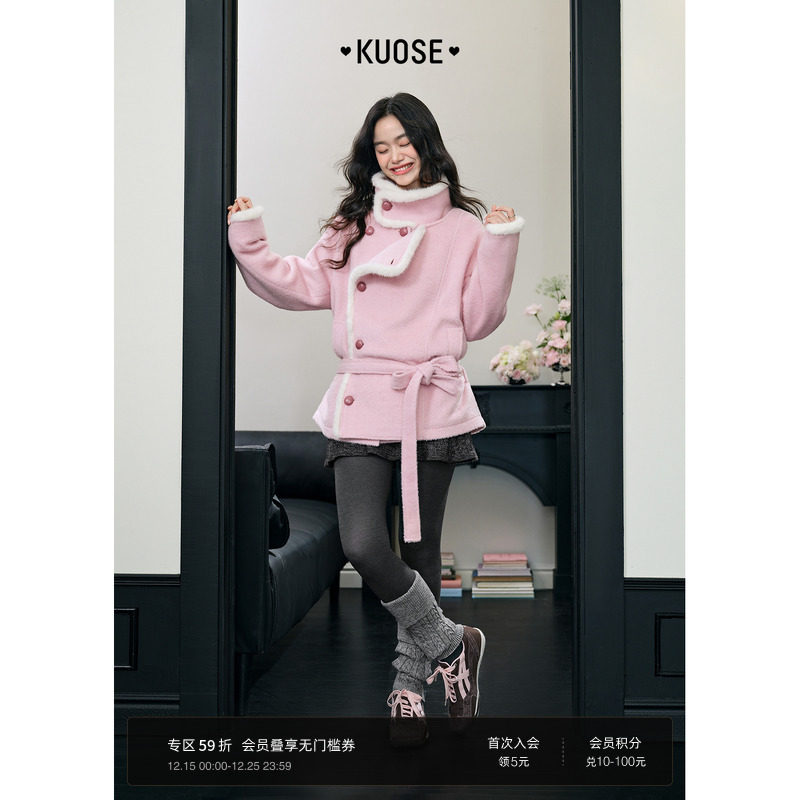 阔色粉色立领短款毛呢外套女2025秋冬季新款气质温柔穿搭呢子大衣