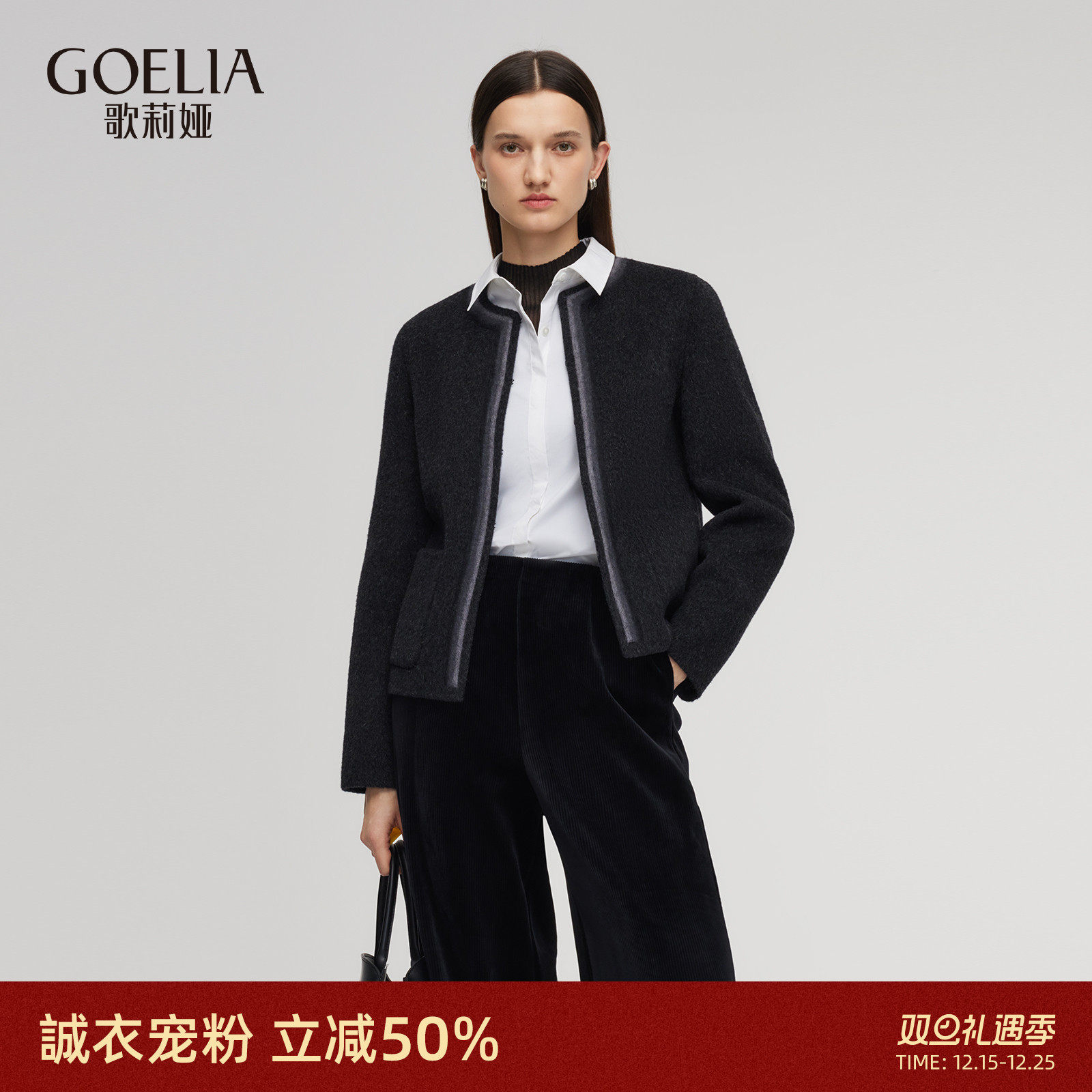 虫小小 轻奢羊绒羊毛撞色双面呢短款大衣女毛呢外套上衣秋冬A71K