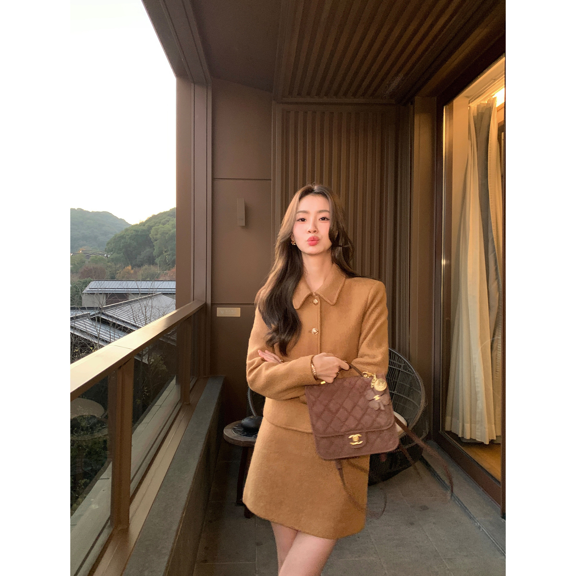pusumede miu系千金 气质优雅短款毛呢外套女高腰a字半身短裙套装