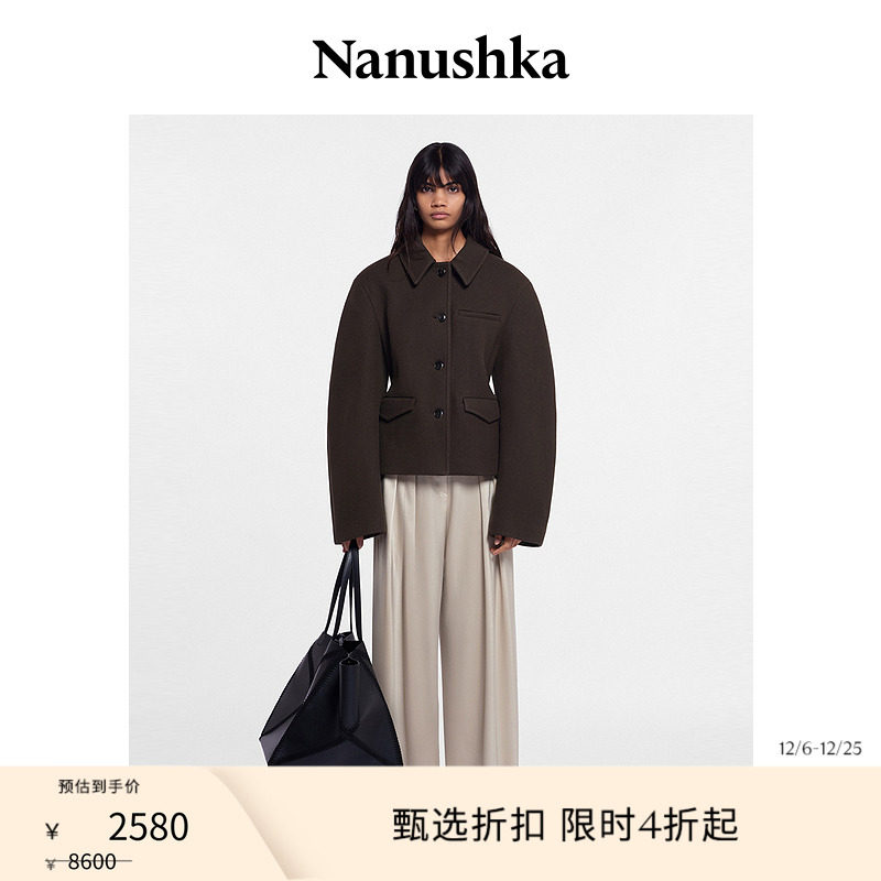 【甄选经典】NANUSHKA 女士 ANDRA 高级感墨绿羊毛短款毛呢外套
