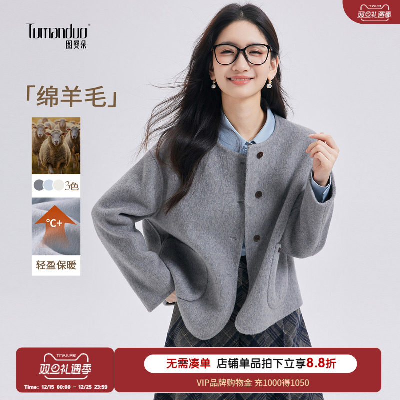 图曼朵灰色短款毛呢外套女小个子2025新款双面呢子短外套羊毛大衣