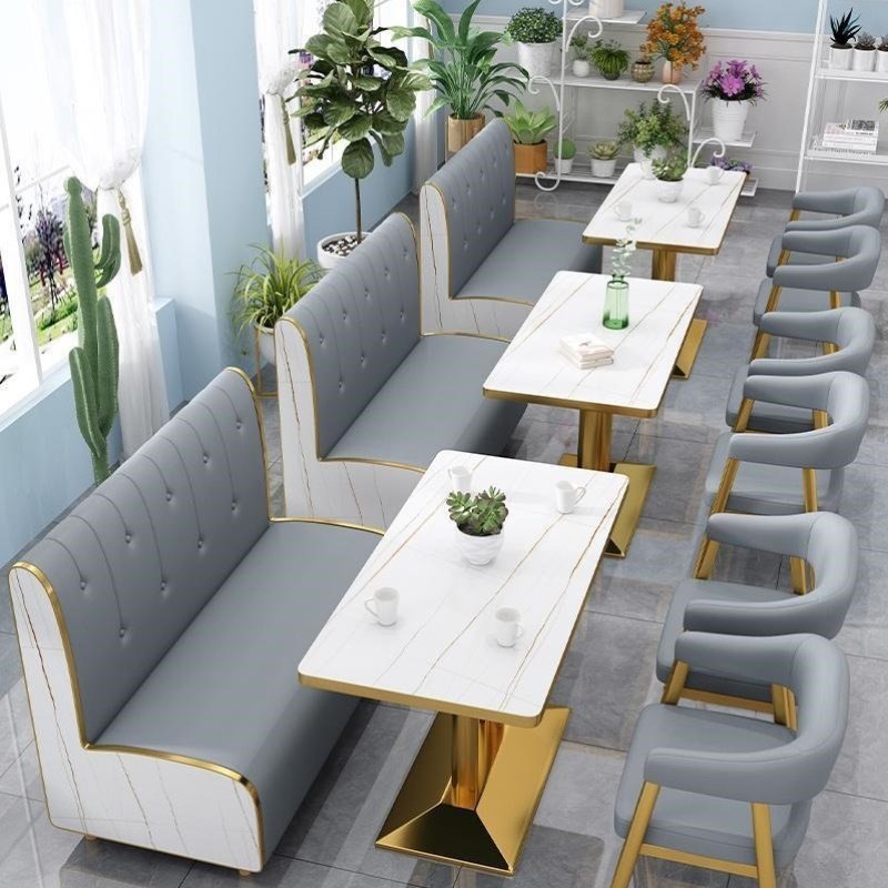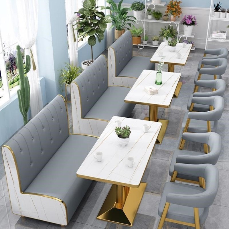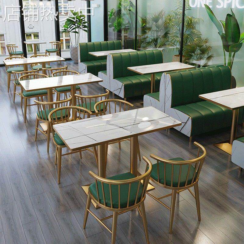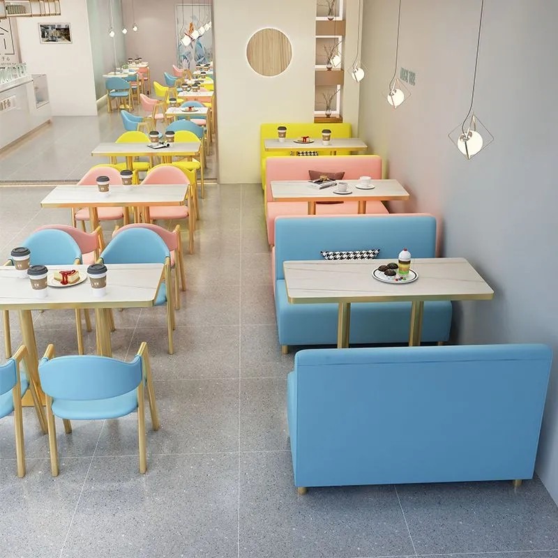 网红奶茶店甜品店桌椅组合餐饮饭店小吃快餐店汉堡店靠墙卡座沙发