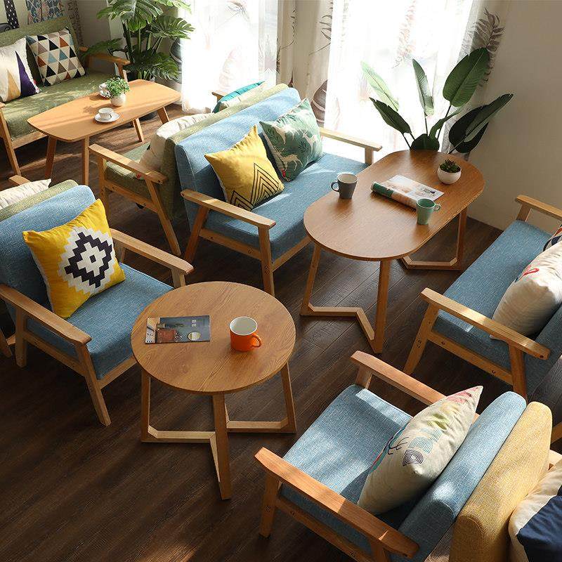 北欧风实木接待洽谈休闲桌椅组合奶茶甜品店咖啡厅书吧小清新桌椅