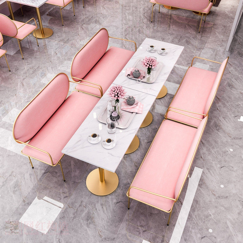 网红奶茶甜品店桌椅组合休闲咖啡厅桌椅服装店接待卡座沙发小户型